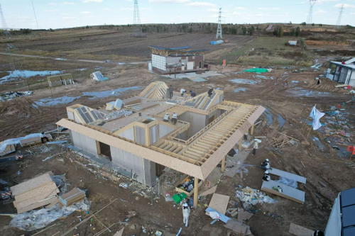 团队与战略合作企业鼎驰集团负责对接预制构建生产进度,并针对张家口赛地特殊气候条件,进一步确认了保温、防水、防风及抗震强化方案,确保预制构件同时满足大赛技术标准与极端环境适应性需求。并且“可循环建材应用率高达92%”,其地下基础保温做法与超低能耗墙体系统由团队自主研发。鼎驰集团特别启用高精度切割生产线,实现误差小于1毫米的定制化加工,为赛队“零碳生态住宅”的创新斜面设计提供产业化支撑。